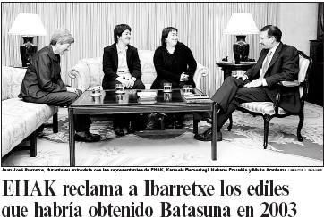 ayer en grandes titulares: “EHAK reclama a Ibarretxe los ediles que habría
